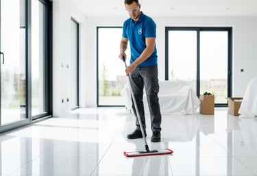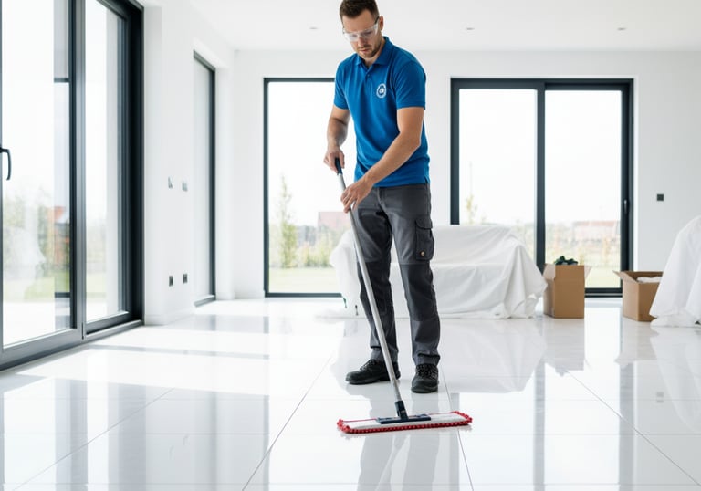 Nettoyage après travaux et remise en état complète : dépoussiérage minutieux, lavage des sols, vitres et surfaces, élimination des débris et salissures